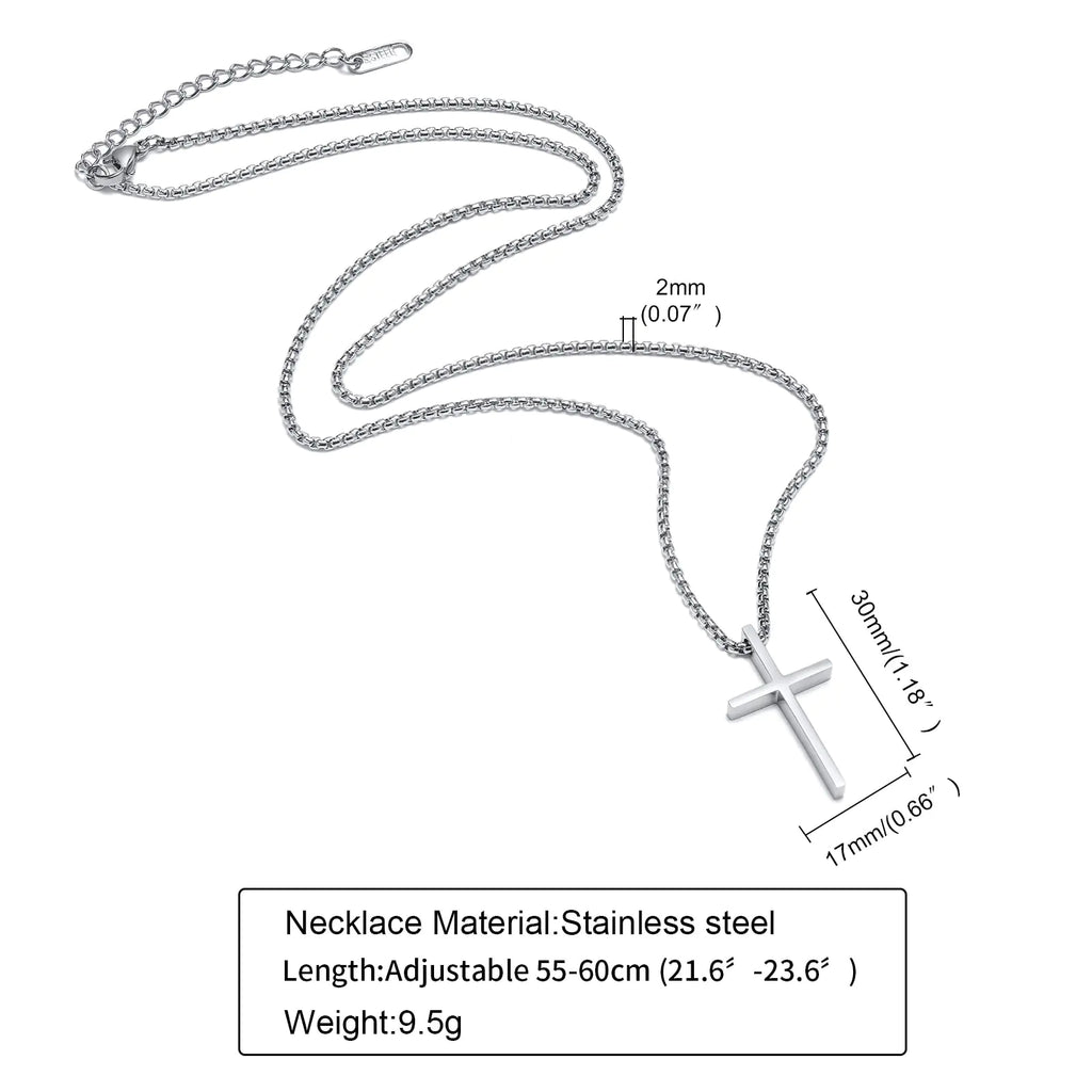 Vnox Mens Cross Necklaces, a perfect blend of simplicity and style. Crafted from durable stainless steel, these necklaces feature a layered plain cross pendant, adding a touch of elegance to your look. The necklace comes with a rope box chain that complements the pendant beautifully. The combination of the cross pendant and the chain creates a simple yet impactful design that can be worn for various occasions. Whether it's a casual outing or a formal event, this necklace is a versatile accessory that suits any style.